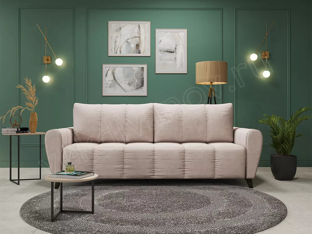 Каркас: выполнен из древесины хвойных пород, фанеры лиственных пород, лам. ДСП и лам. ДВП. В диване короб из ЛДСП.