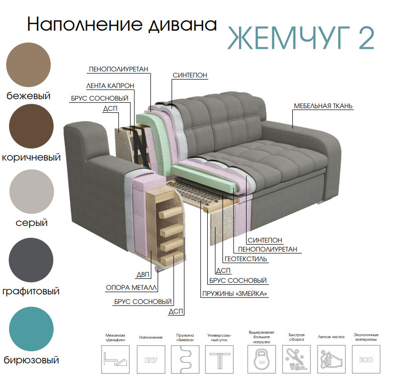 Наполение: ППУ, пружина "Змейка"