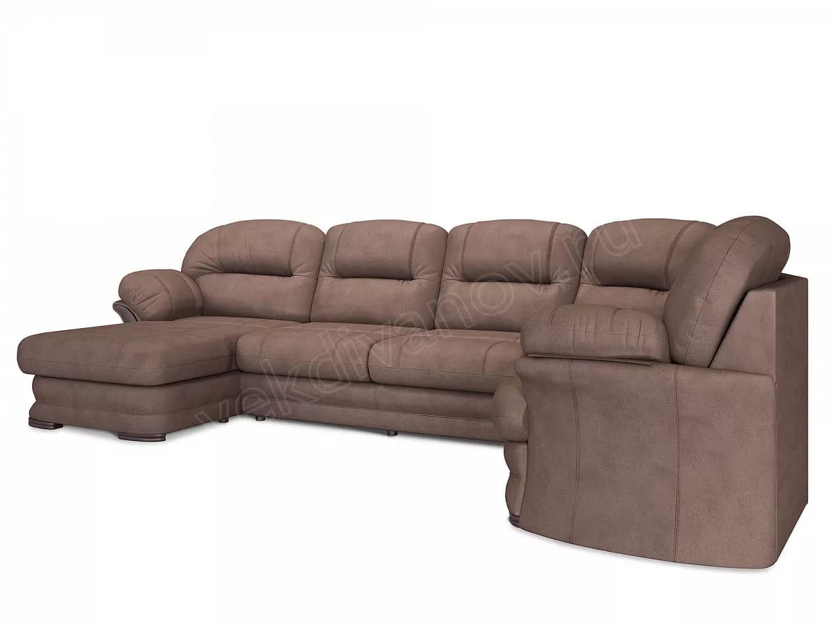 - Диван угловой большой П-образный Квин 6 без механизма Ultra Chocolate