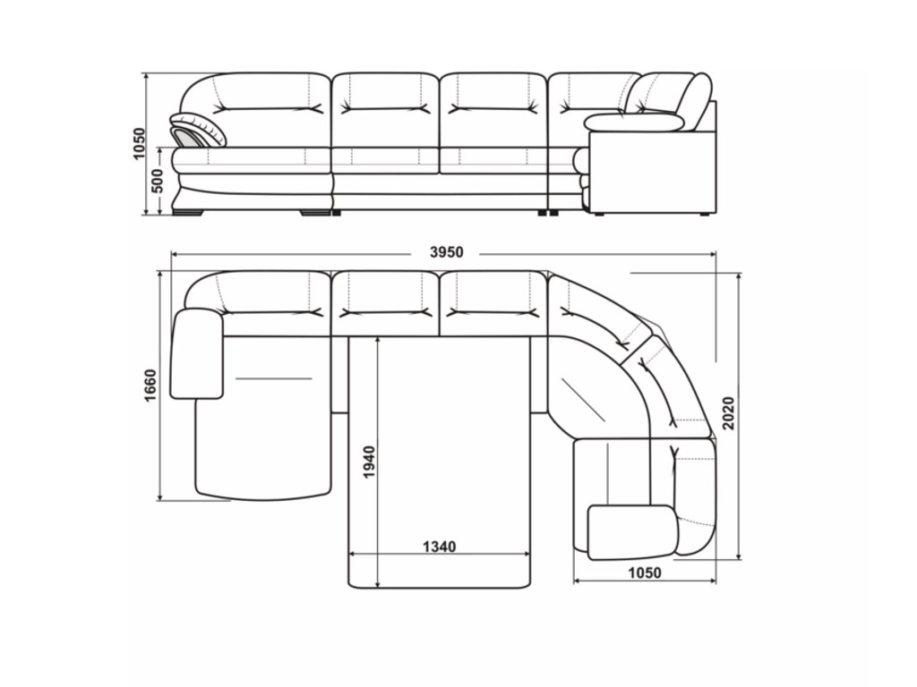 Размеры дивана (мм): 2020*3950*1660*1050