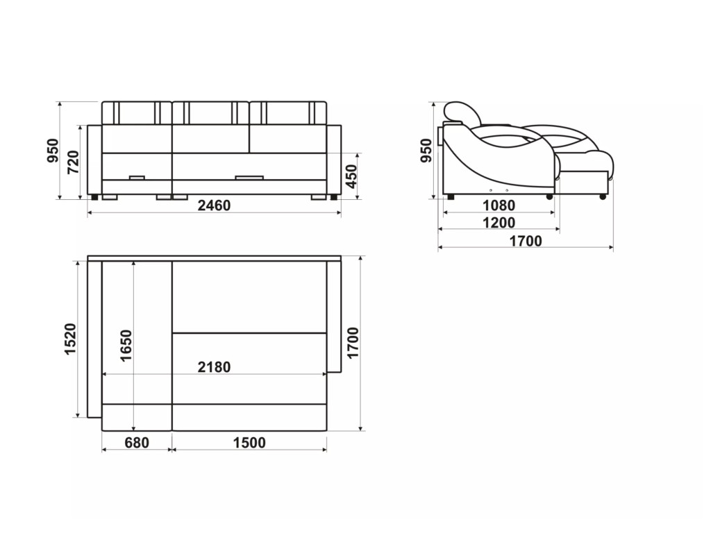 Размеры дивана (мм): 2460*1700*950