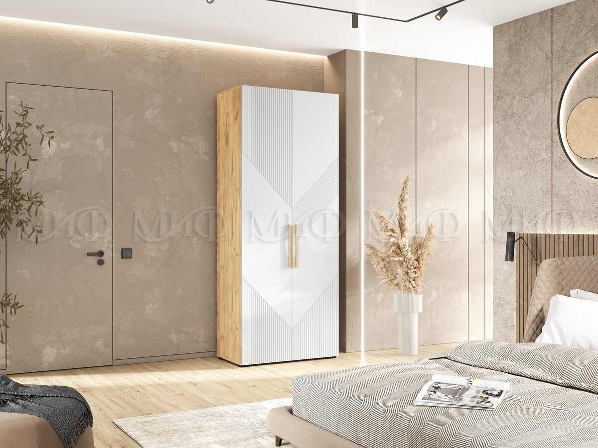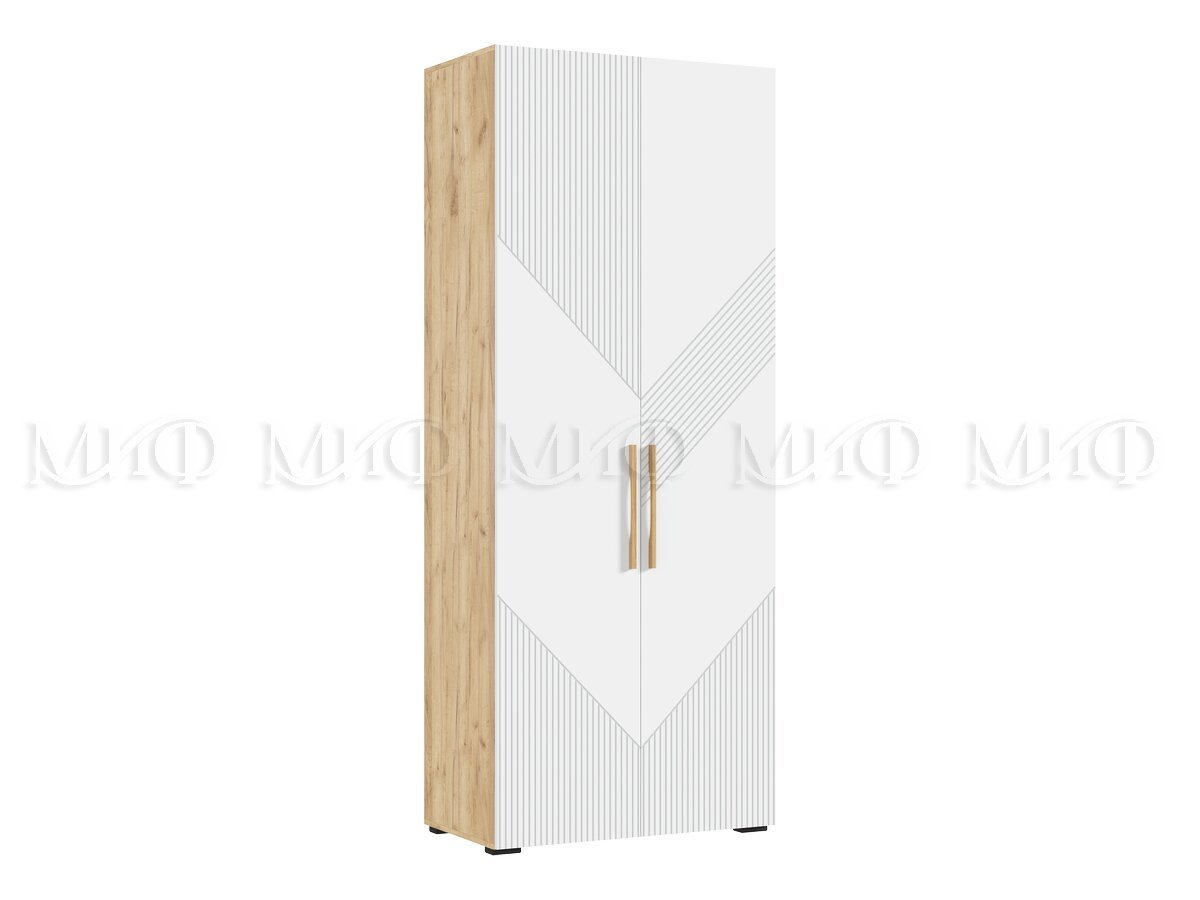 - Шкаф 2-х створчатый (900) Ирис Браш Вайт, Дуб Крафт