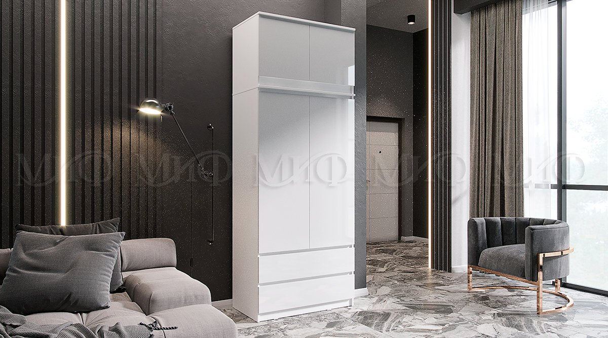 - Шкаф 2-х створчатый комбинированный с антресолью 900 Челси Белый