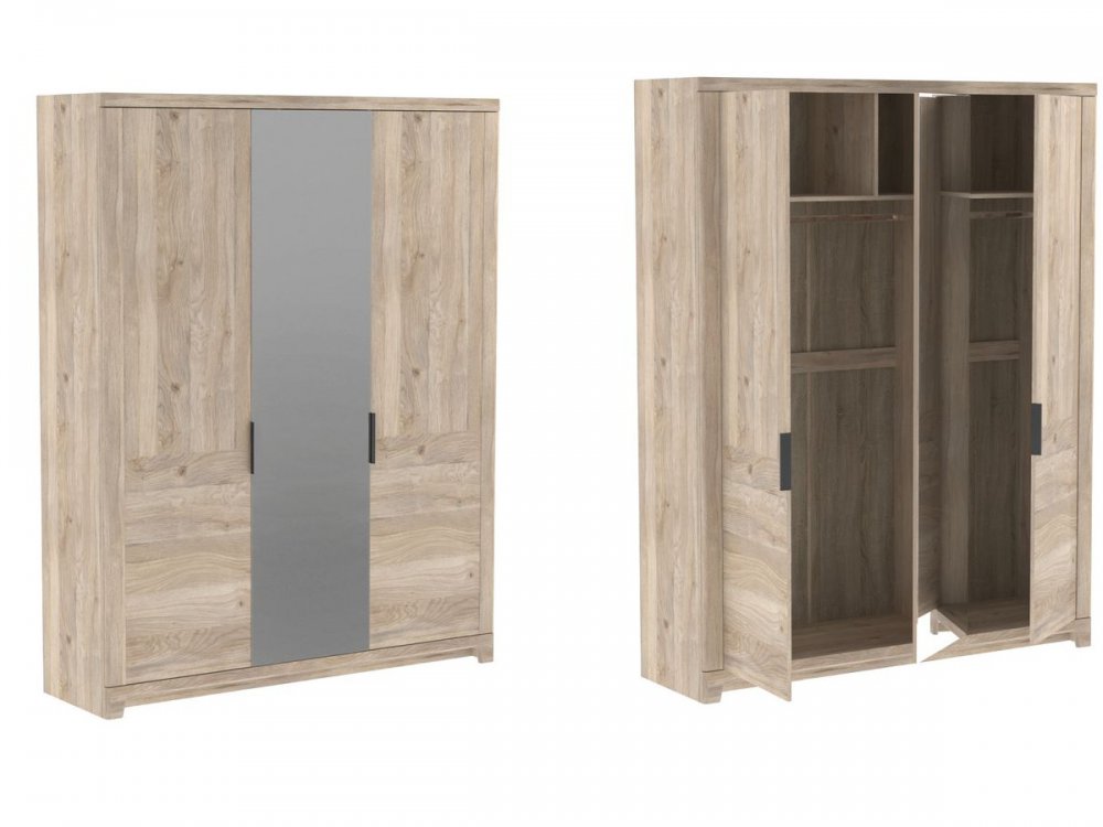 Шкаф 3-х дверный широкий зеркальный Юта Дуб Мария