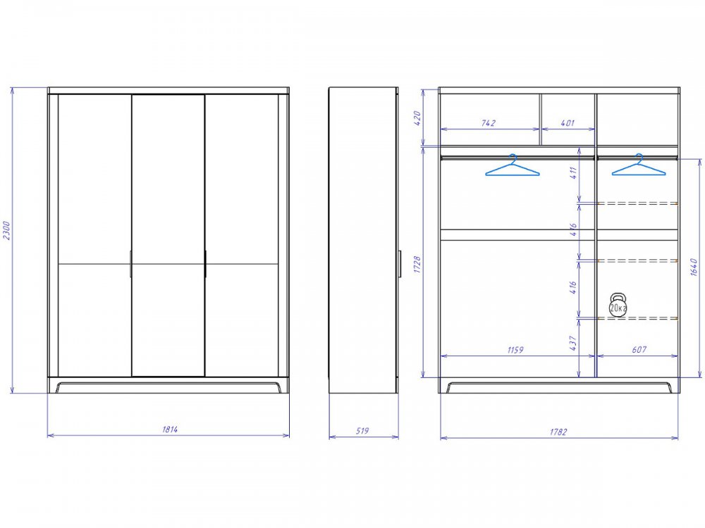 - Шкаф 3-х дверный широкий зеркальный Юта Дуб Мария