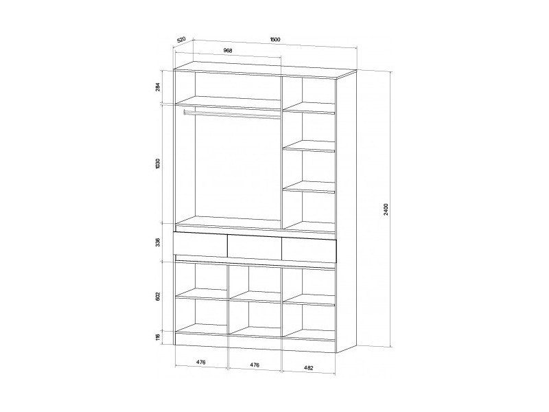 Габариты: 1500(Ш) х 520(Г) х 2400(В) мм.
