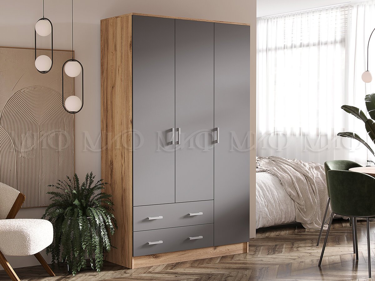Шкаф 3-х створчатый Миф Графит/Дуб Крафт