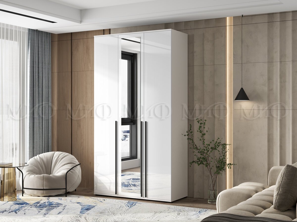 Шкаф 3-х створчатый Норд 1200 с зеркалом белый глянец