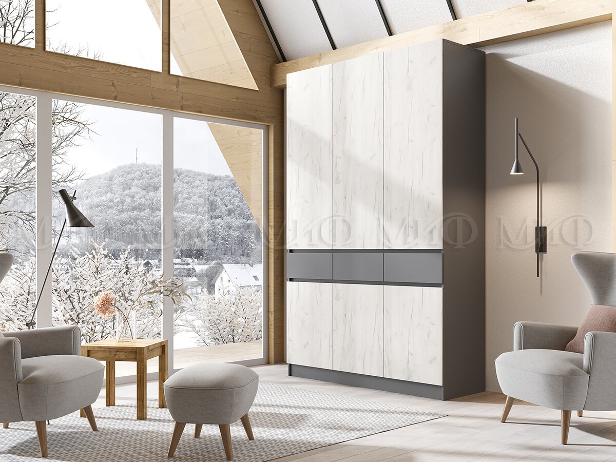 Шкаф 3-х створчатый Роджина Графит/Дуб Крафт Белый