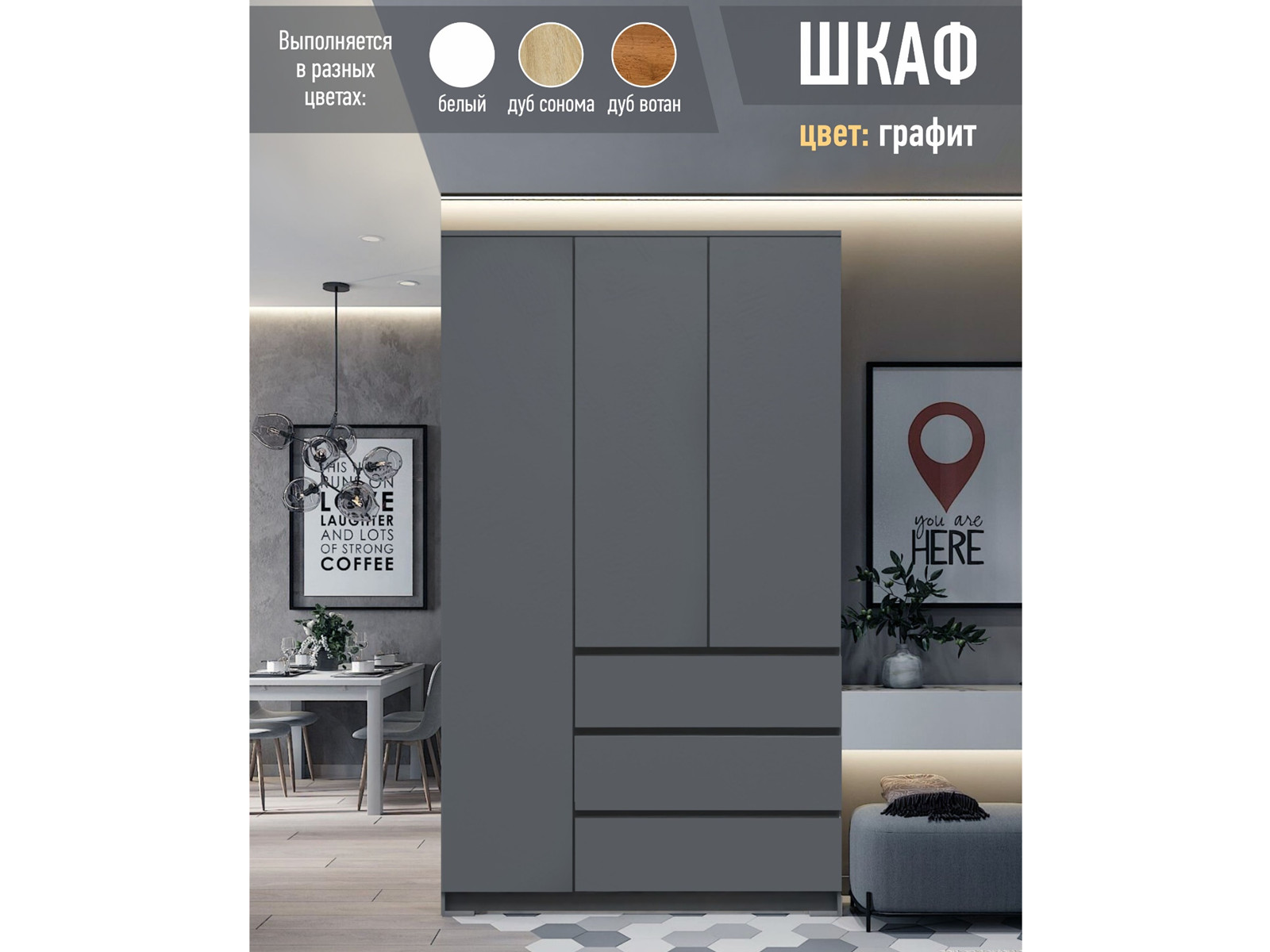 Цвета: Графит, белый, дуб вотан, дуб сонома, ясень анкор светлый