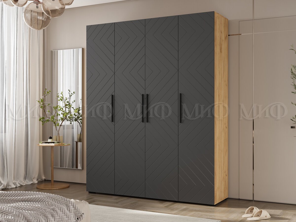 Шкаф четырехстворчатый (1800) Флэш Браш Графит, Дуб Крафт