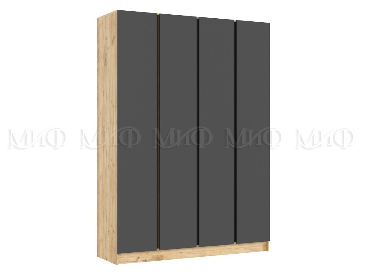 - Шкаф четырехстворчатый Келвин (1600) Графит, Дуб Крафт-вставка черная