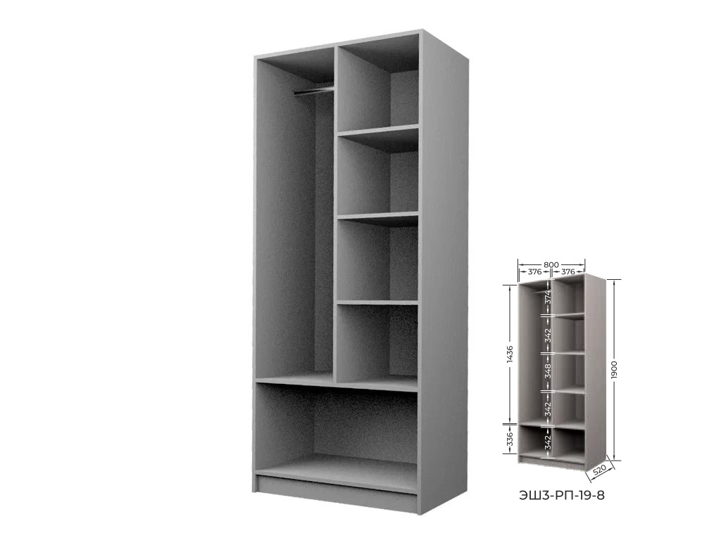 Комплект: ЭШ3-РП-19-8, Шкаф для Одежды + два ЗС-19,Зеркало для шкафов ЭШ 1900 мм