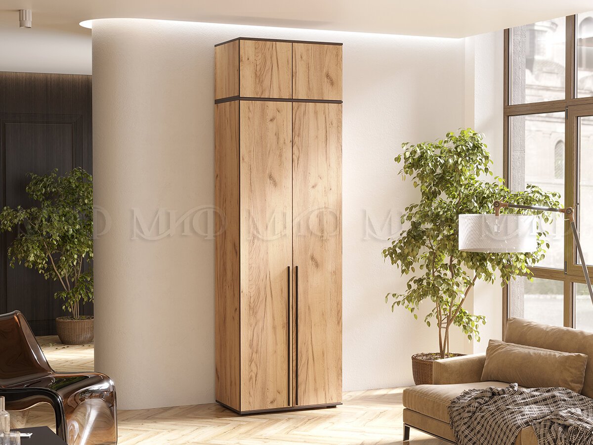 - Шкаф двухстворчатый Норд 800 с антресолью дуб крафт МГ