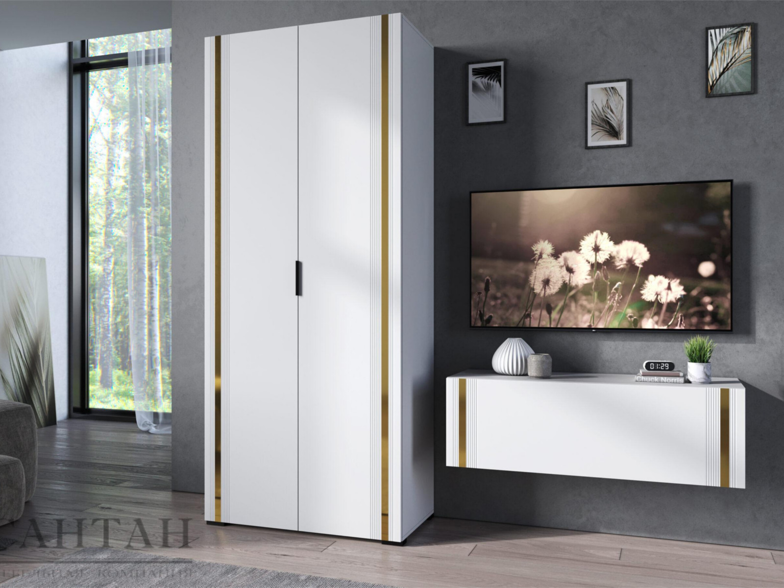 - Фасады из МДФ с оригинальной фрезеровкой покрыты суперматовой пленкой с эффектом Soft Touch в цветах Графит и Milk.