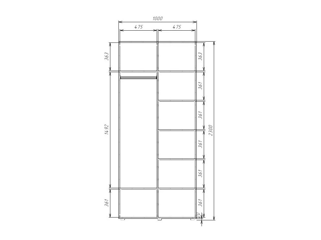 - Шкаф Гранд ГШК/1-23-10-11 (двери тип 1) с зеркалами