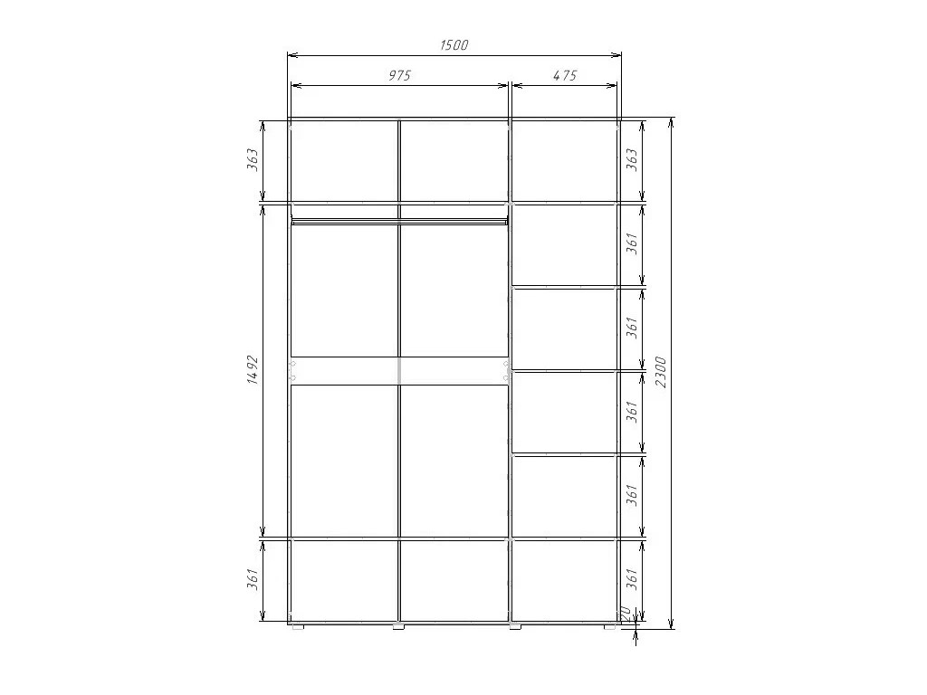 - Шкаф Гранд ГШК/1-23-15-222 (двери тип 2) с одним зеркалом