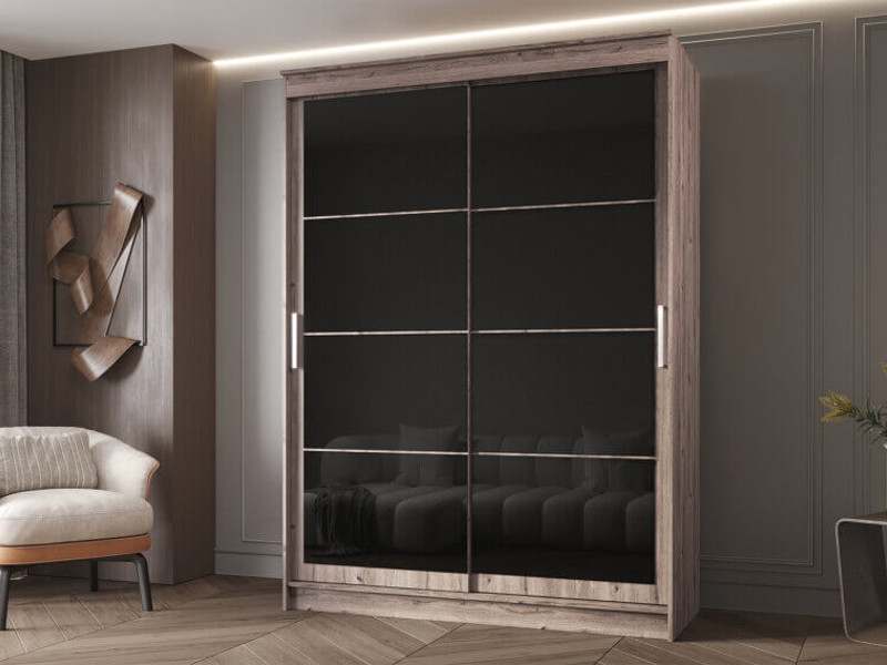 - Шкаф-купе Гранд-1 1600 Дуб Горный-двери Лакобель черный
