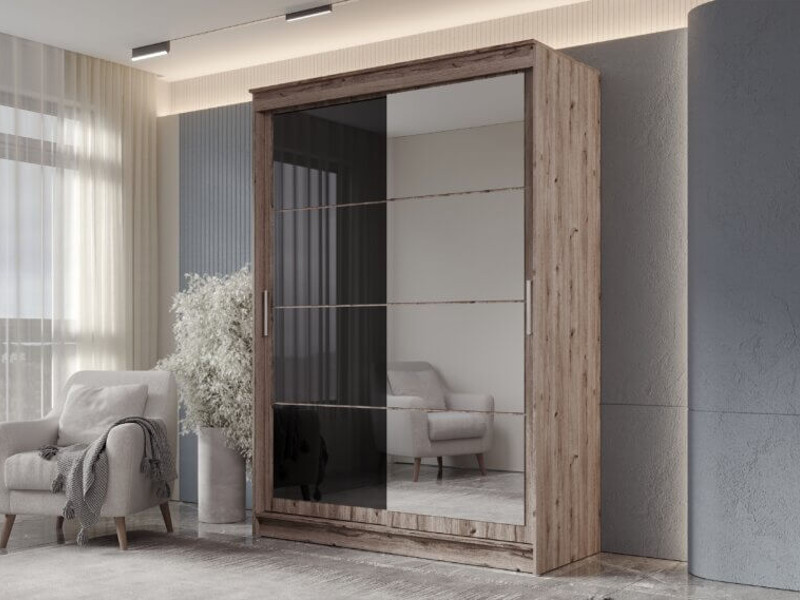 Шкаф-купе Гранд-1 1600 Дуб Горный-двери Зеркало-Лакобель черный
