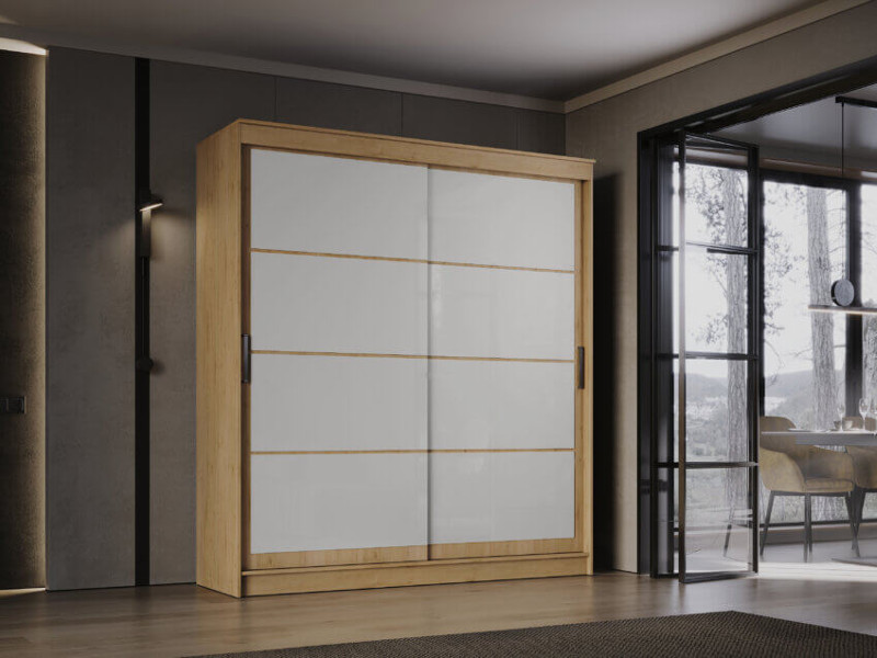 - Шкаф-купе Гранд-1 2000 Дуб Вотан-двери Лакобель белый