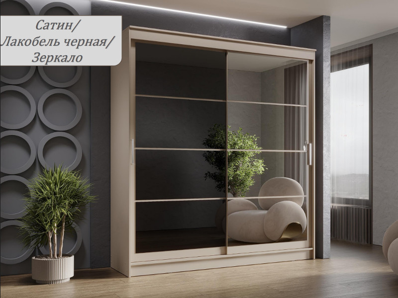 - Шкаф-купе Гранд-1 2000 Сатин-двери Зеркало-Лакобель черный