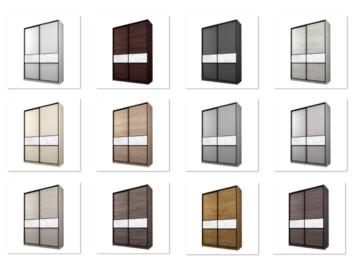 - 2 двери верхняя и нижняя вставка – ДСП 10 мм, центральная – стекло с пленкой Oracal.