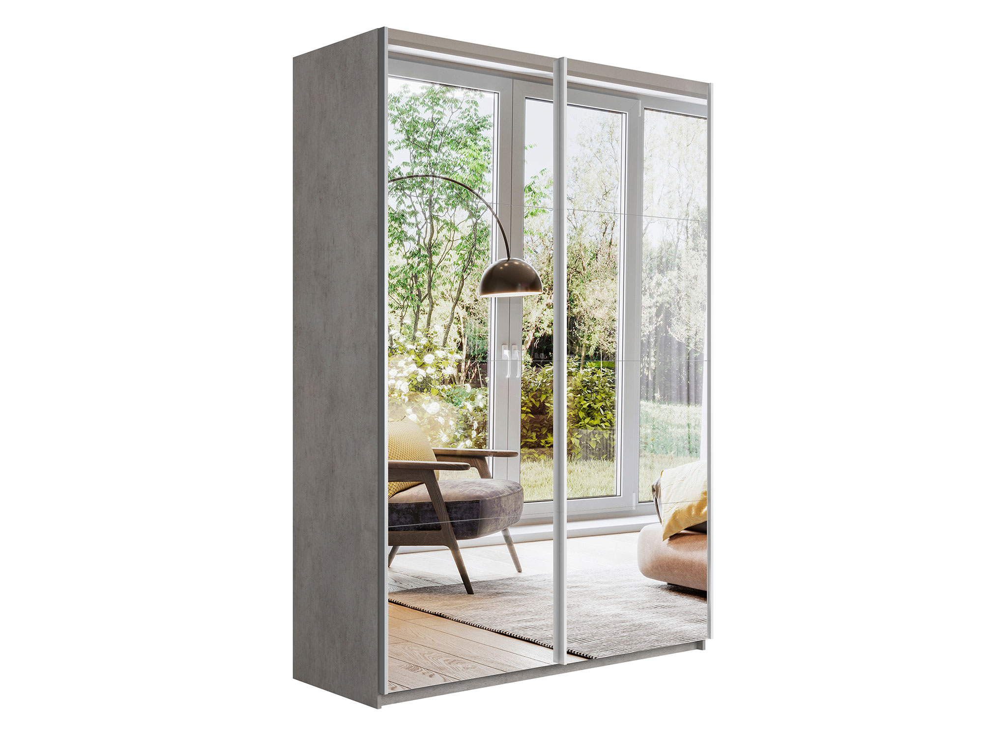 - Шкаф-купе Прайм 2-х дверный 1200 два зеркала Бетон