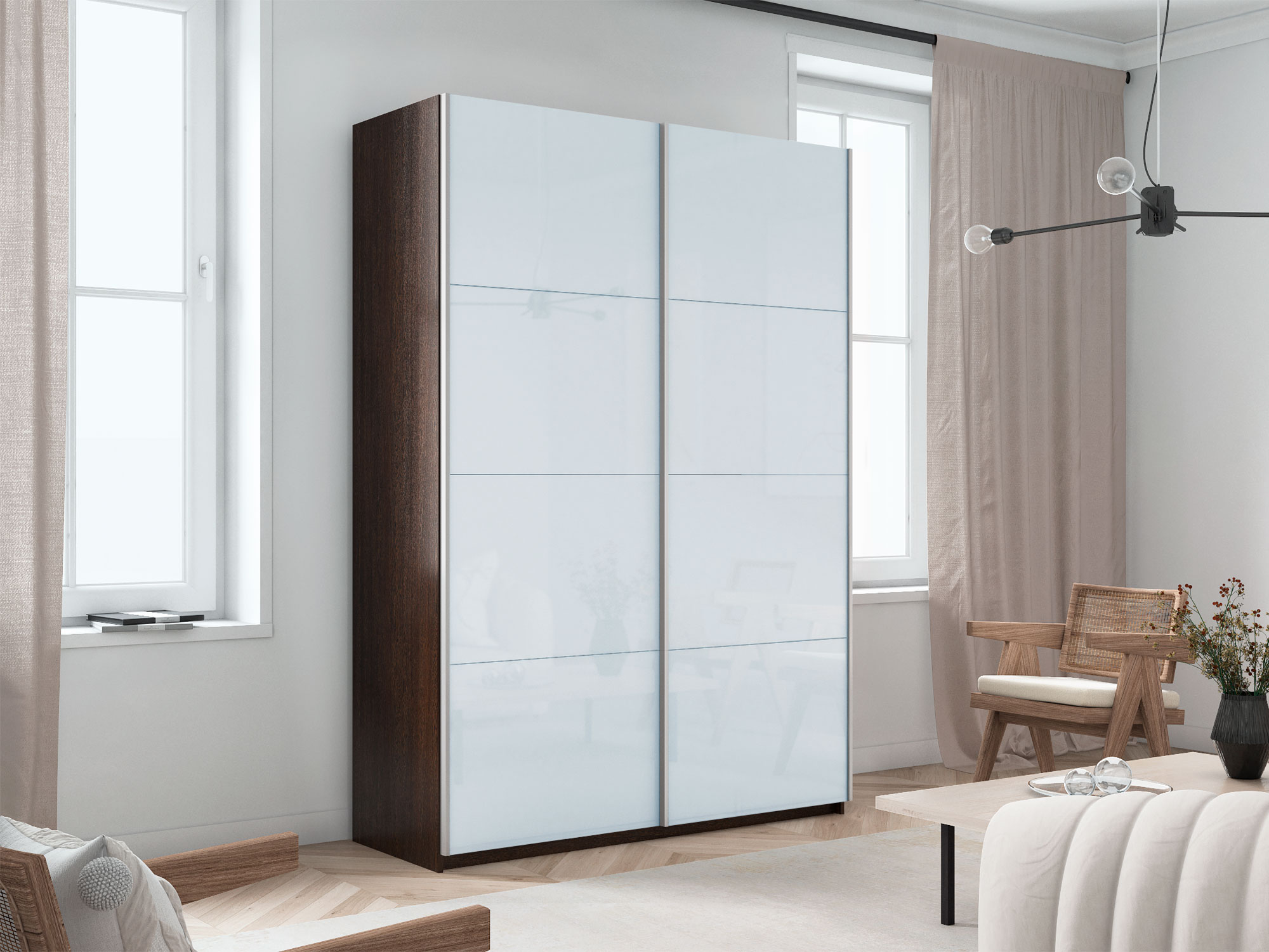 - Шкаф-купе Прайм 2-х дверный 1200 Стекло Белое Венге