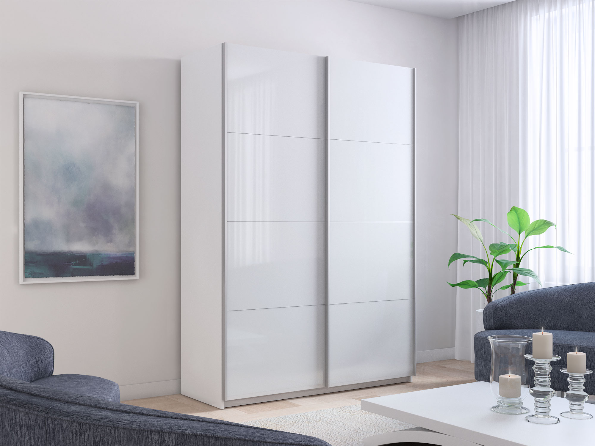 Шкаф-купе Прайм 2-х дверный 1400 Стекло Белое Белый Снег