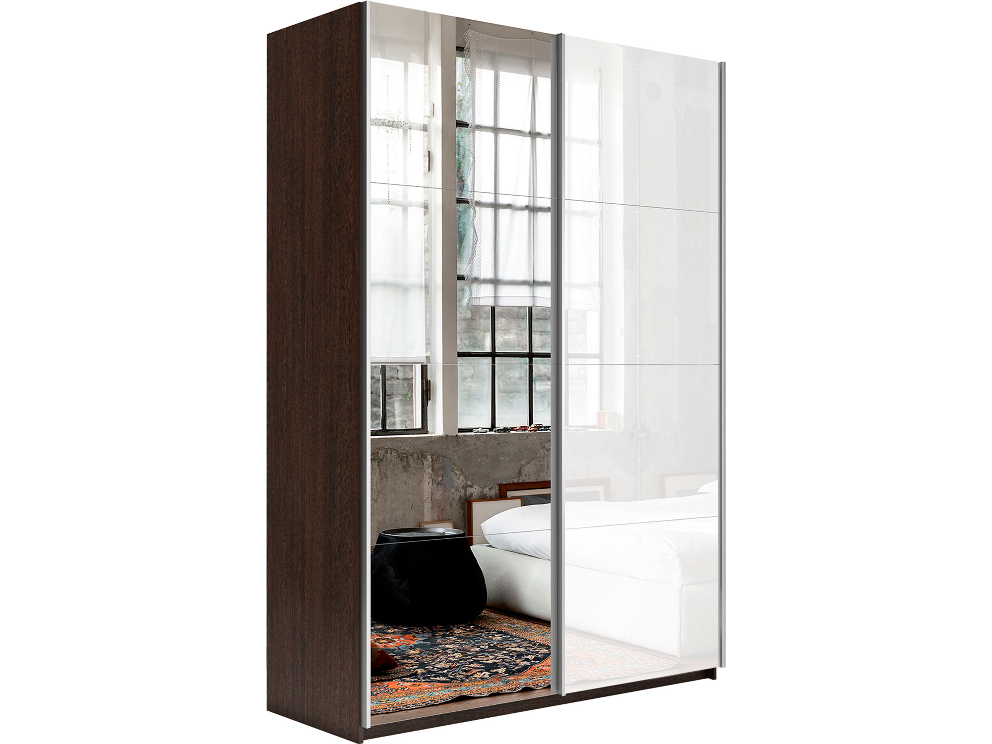 Шкаф-купе Прайм 2-х дверный 1400 Зеркало/Стекло Белое Венге