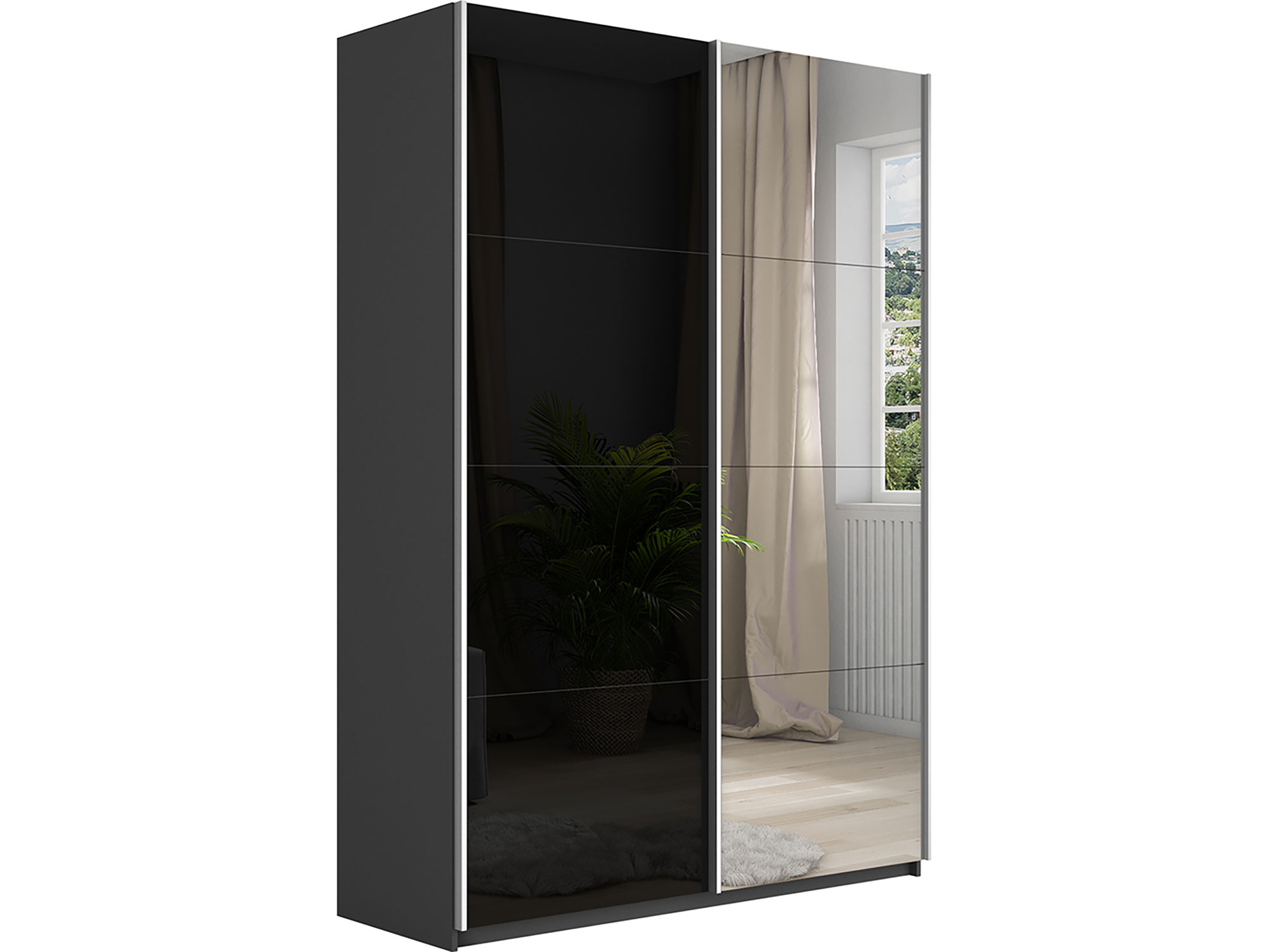 - Шкаф-купе Прайм 2-х дверный 1400 Зеркало/Стекло Черное Серый Диамант