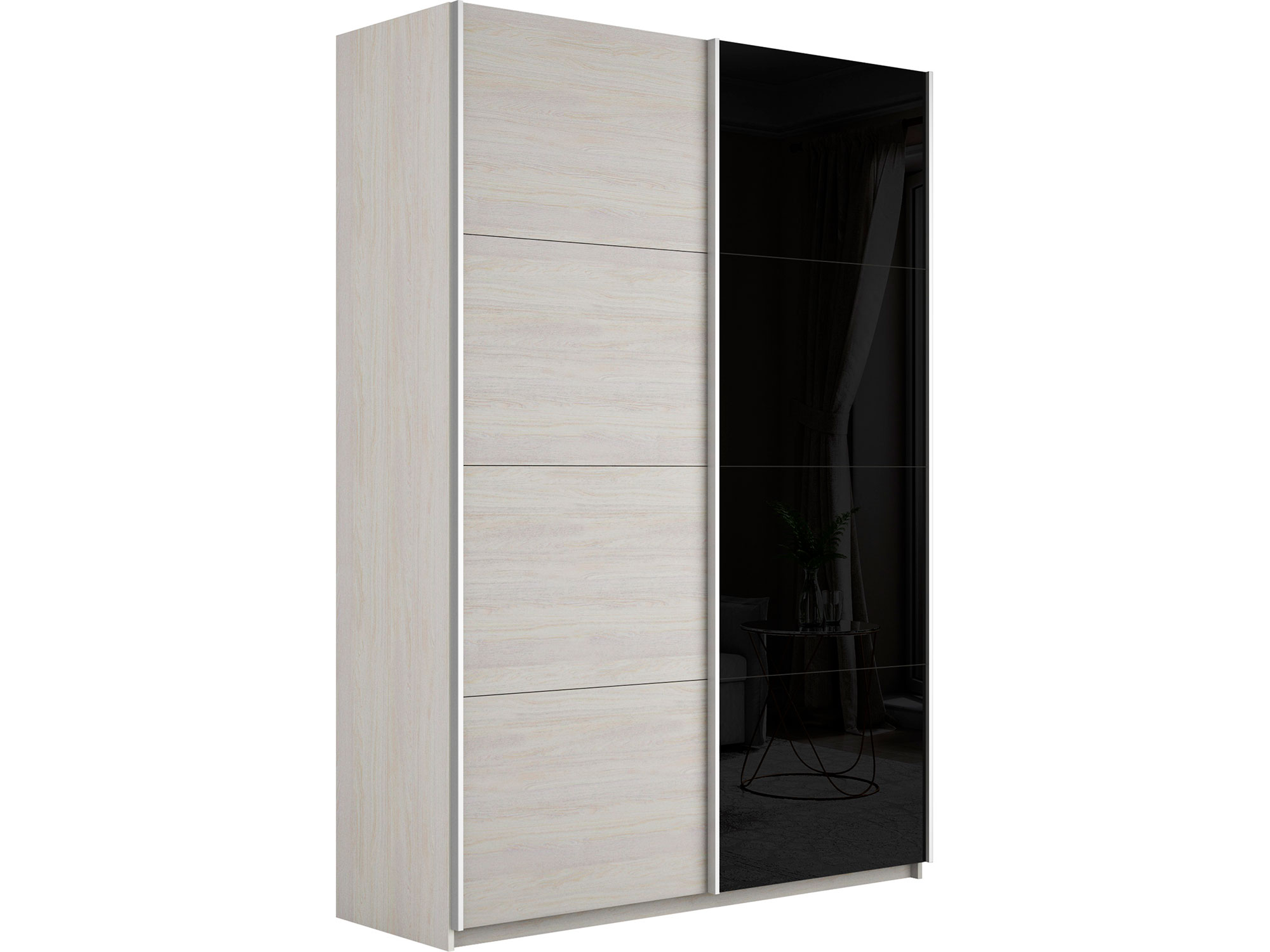 - Шкаф-купе Прайм 2-х дверный 1600 ДСП/Стекло Черное Ясень Анкор Светлый