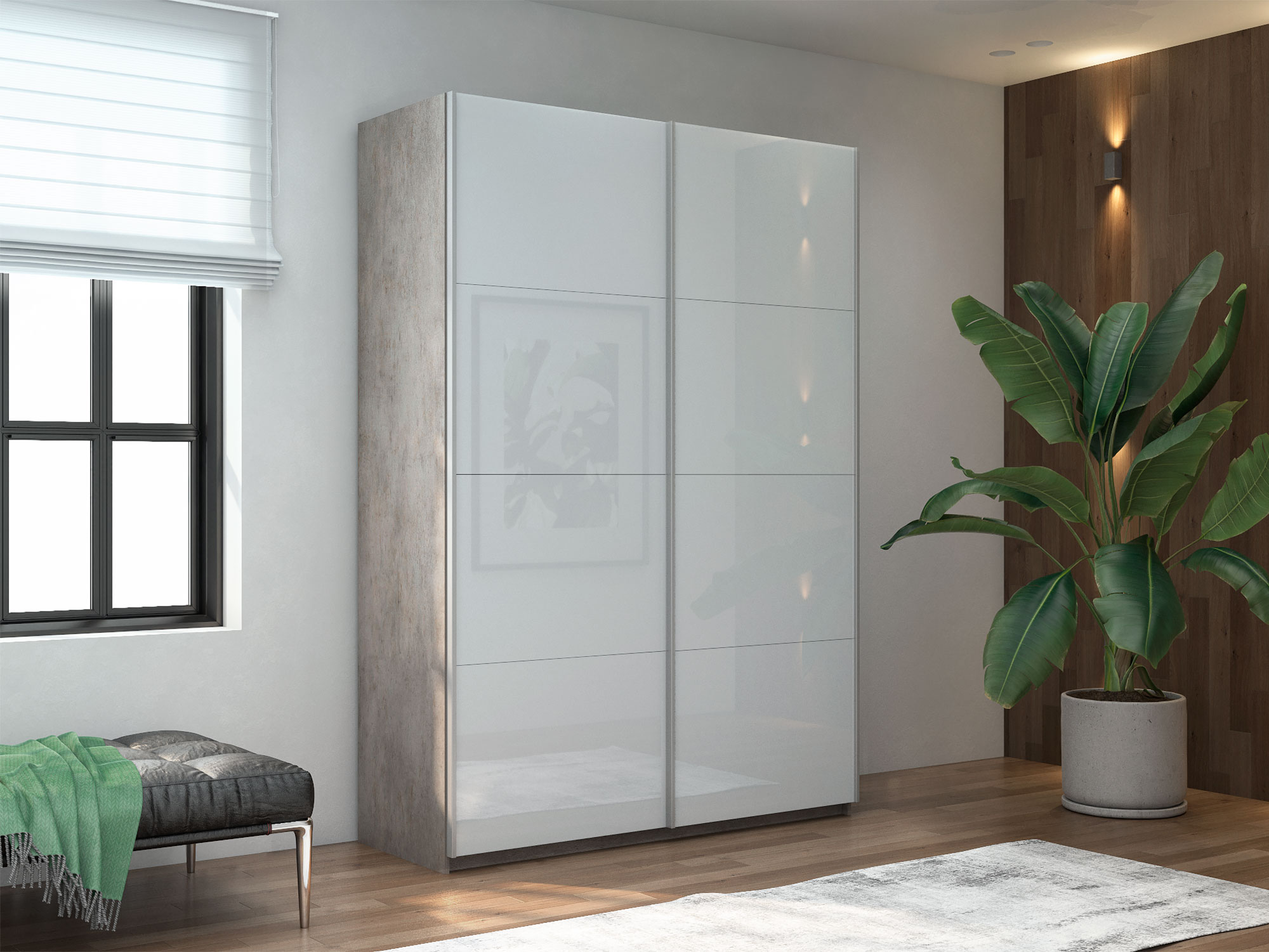 Шкаф-купе Прайм 2-х дверный 1600 Стекло Белое Бетон