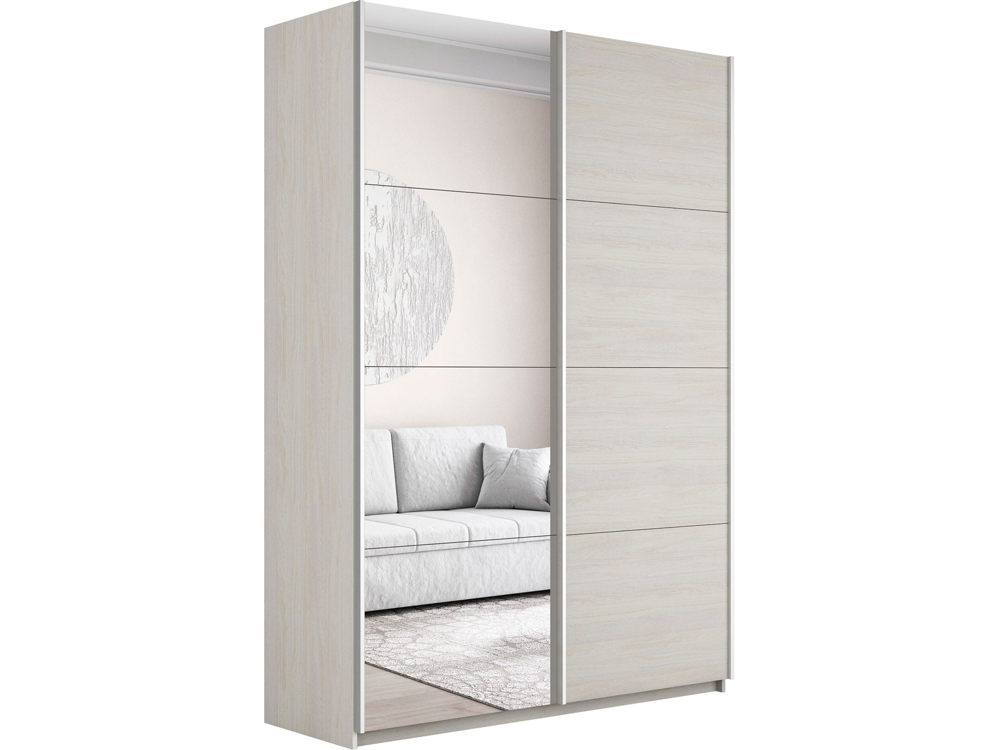 - Шкаф-купе Прайм 2-х дверный 1600 Зеркало/ДСП Ясень Анкор Светлый