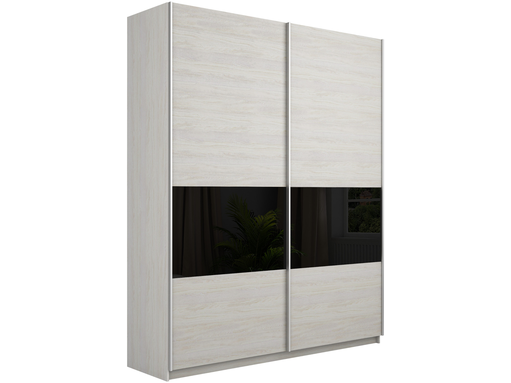 - Шкаф-купе Прайм 2-х дверный ДСП/вставки Стекло Черное Ясень Анкор Светлый