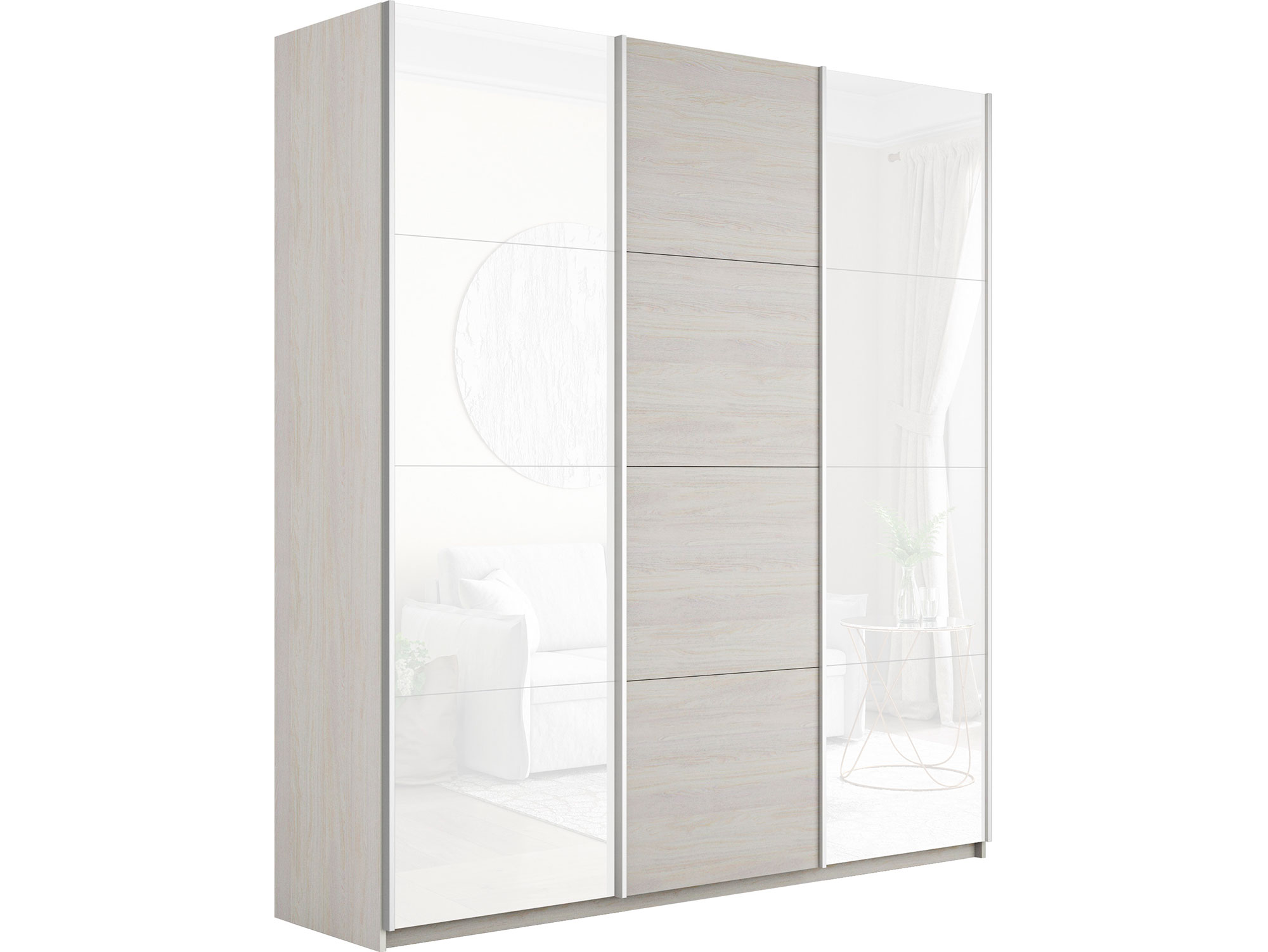 - Шкаф-купе Прайм 3-х дверный 1800 два Стекла Белые/ДСП Ясень Анкор Светлый