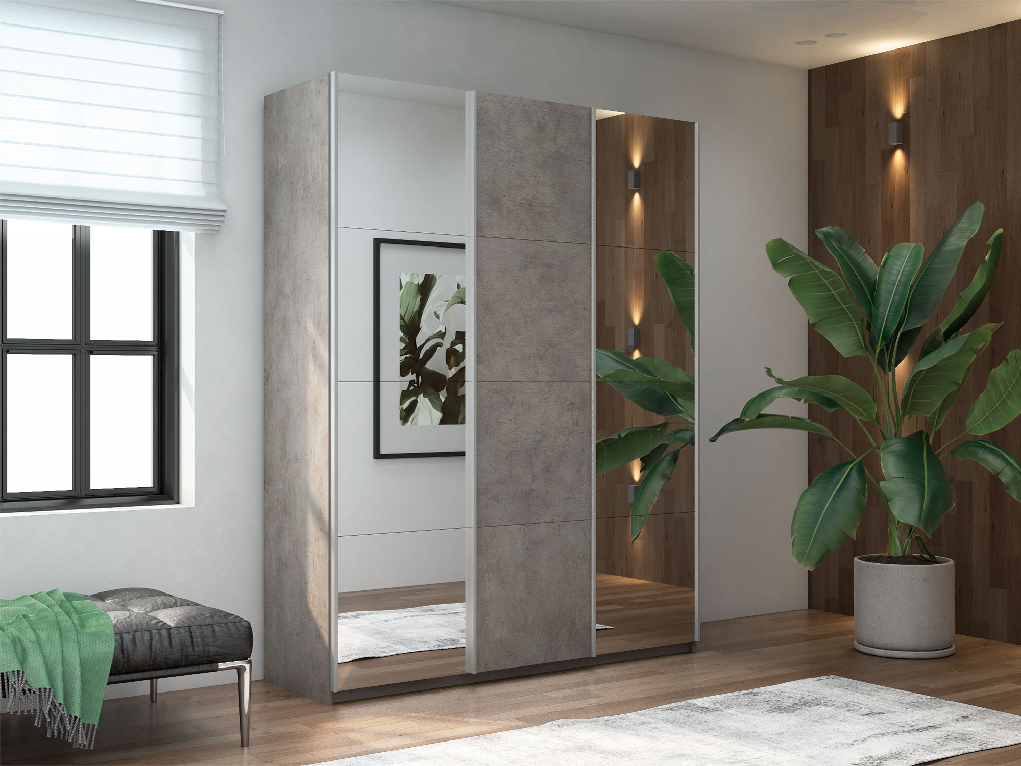 - Шкаф-купе Прайм 3-х дверный 1800 два Зеркала/ДСП Бетон