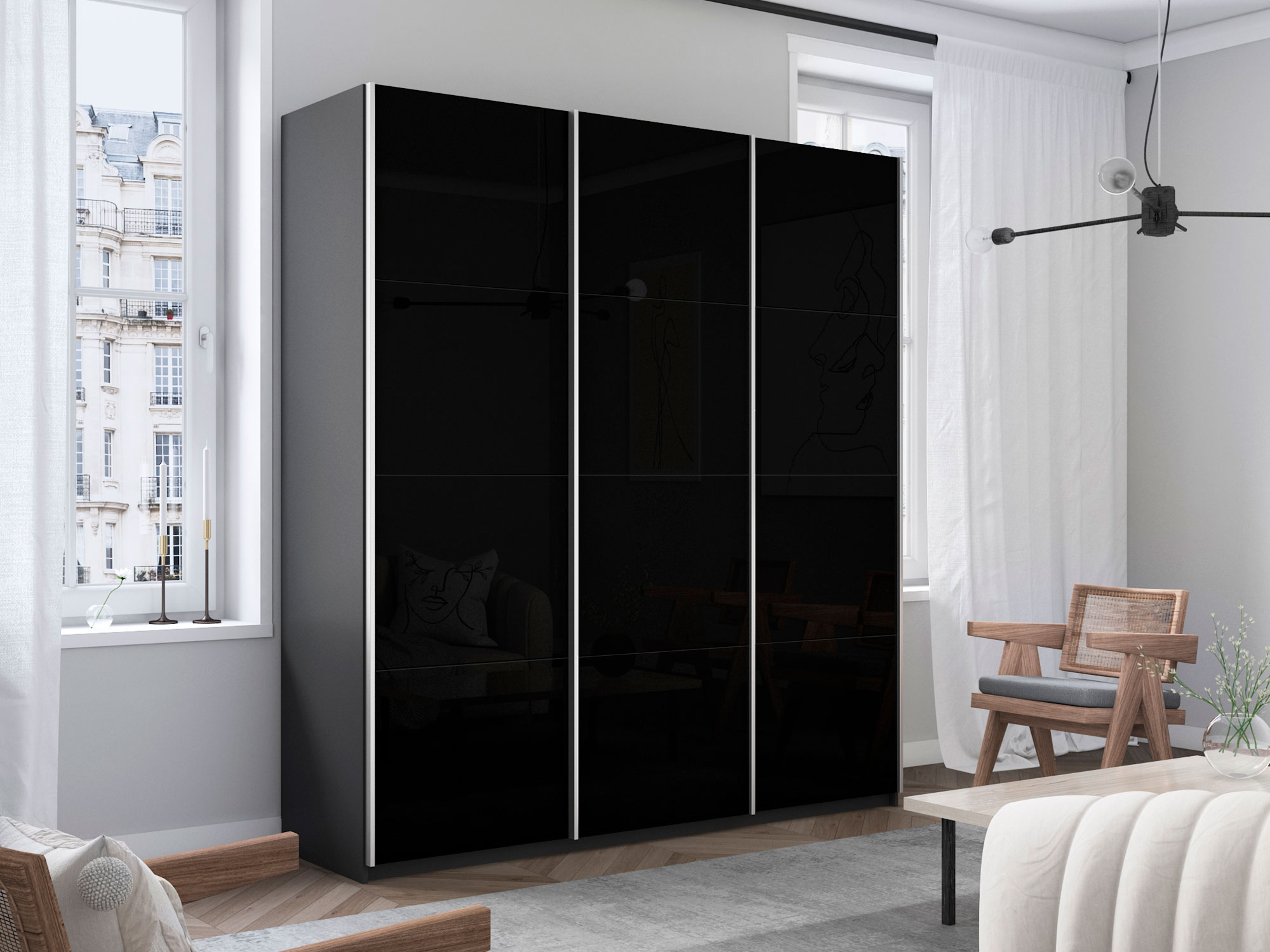 Шкаф-купе Прайм 3-х дверный 1800 три стекла черные Серый Диамант