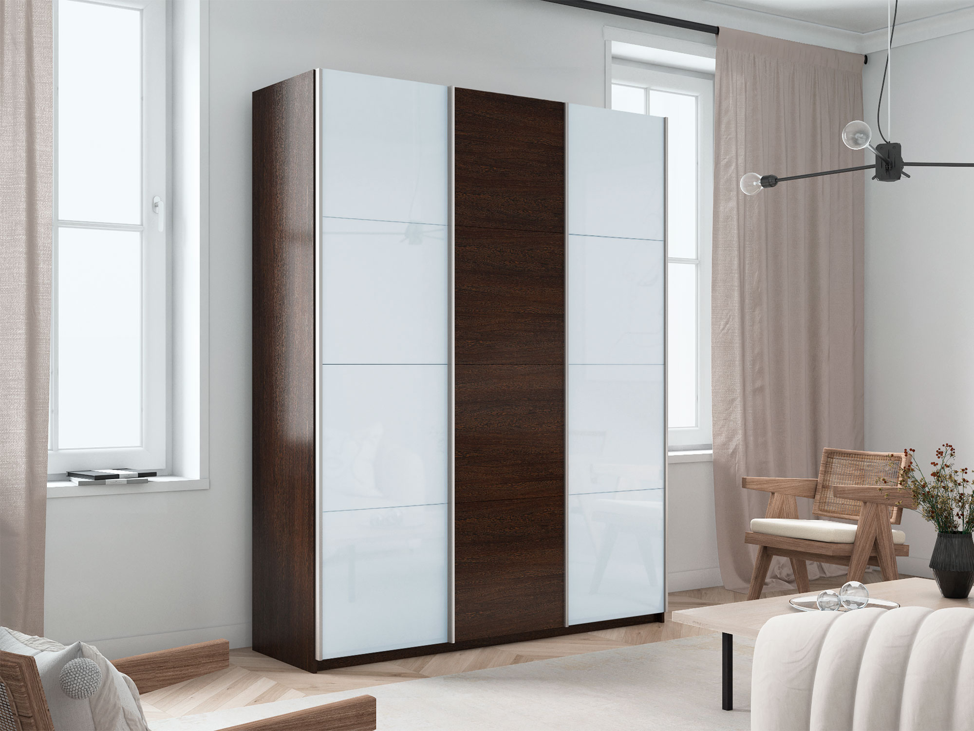 Шкаф-купе Прайм 3-х дверный 2100 два Стекла Белые/ДСП Венге