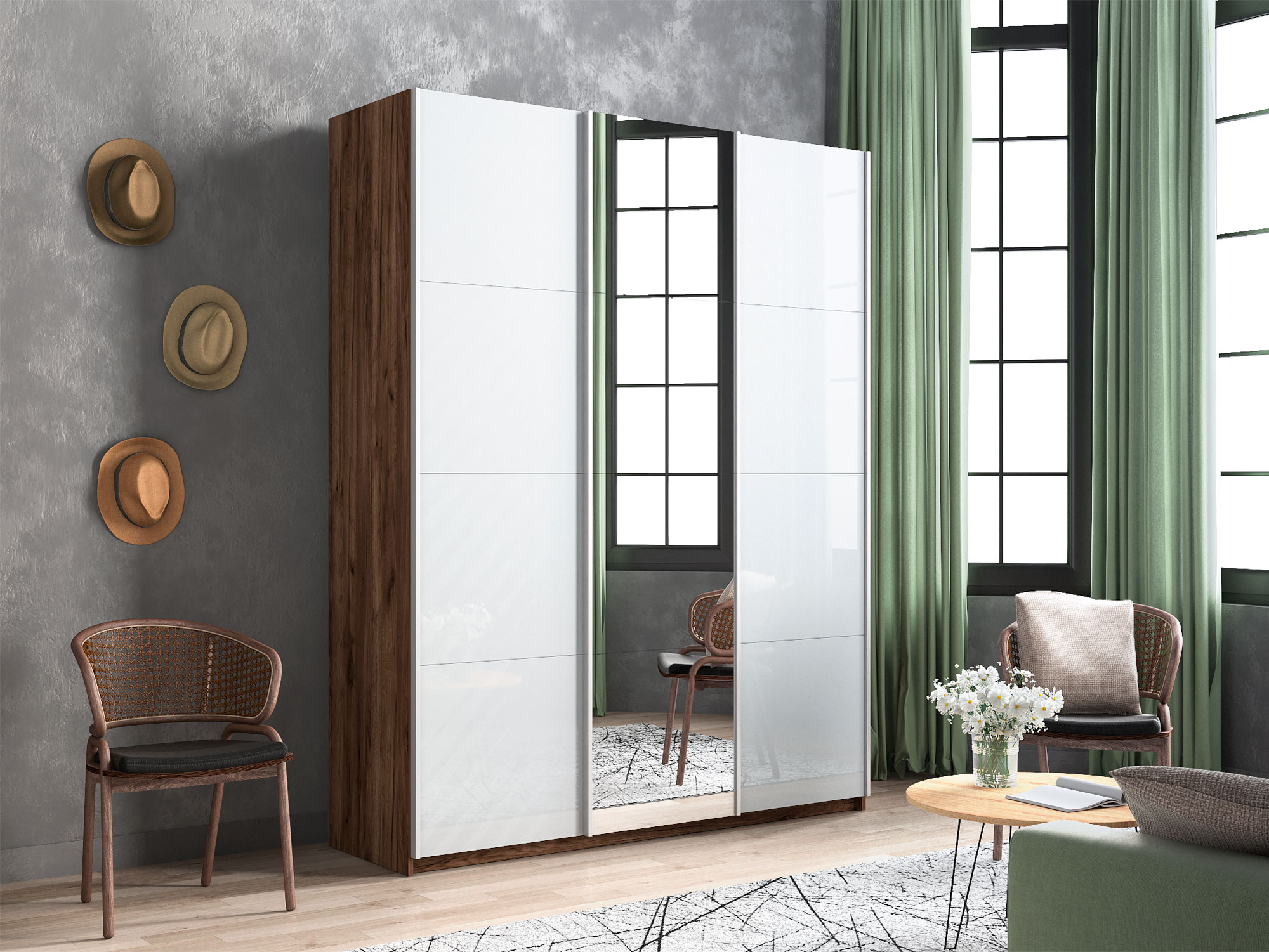 - Усиленная навесная система дверей помогает ходовому профилю выдерживать высокие нагрузки, а также сохраняет полезную площадь внутри шкафа, благодаря установке снаружи корпуса