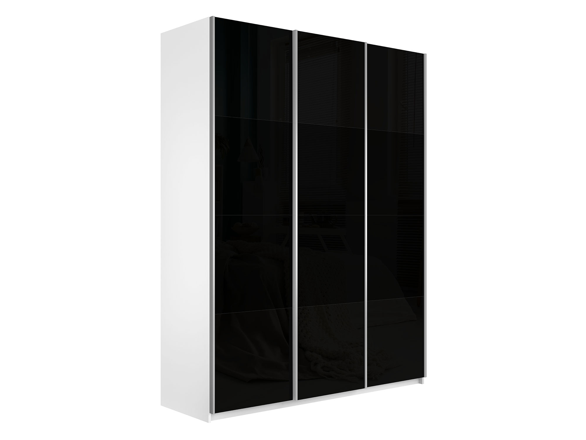 Шкаф-купе Прайм 3-х дверный 2100 три стекла черные Белый Снег