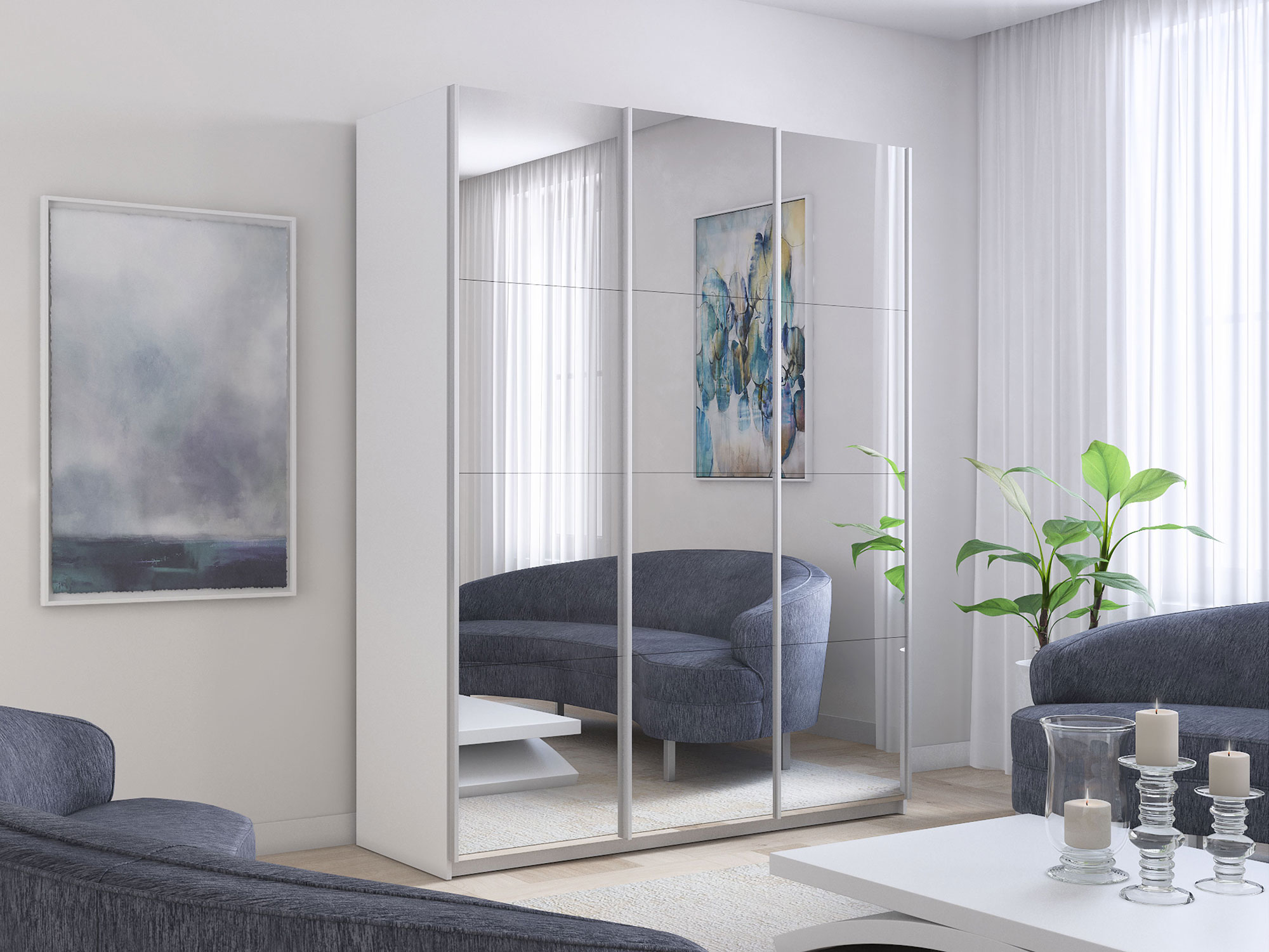 - Шкаф-купе Прайм 3-х дверный 2100 три зеркала Белый Снег
