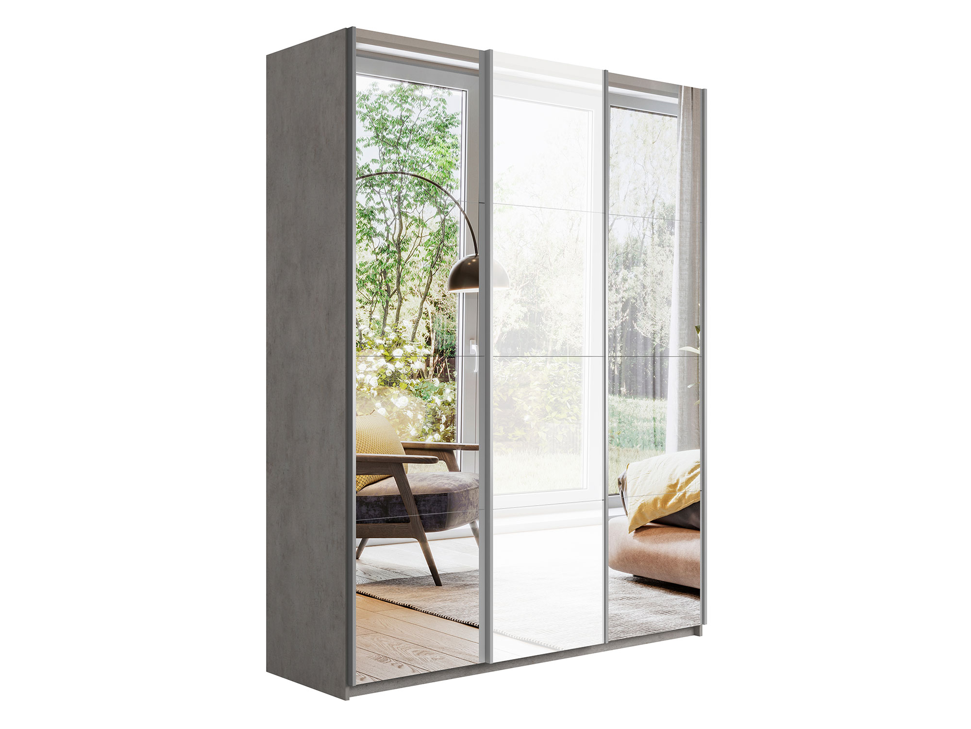 Шкаф-купе Прайм 3-х дверный 2100 Зеркало/Стекло Белое/Зеркало Бетон