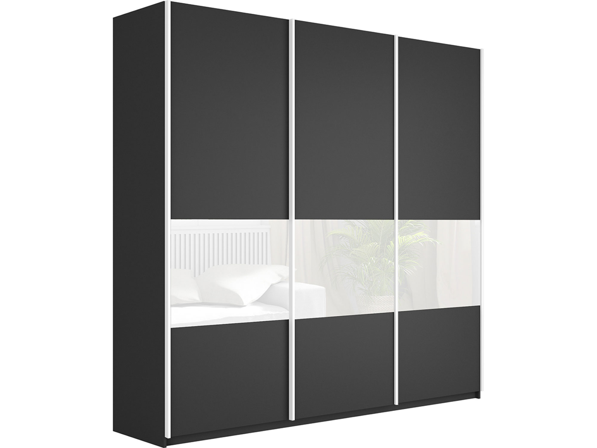 - Шкаф-купе Прайм Широкий 3-х дверный ДСП/вставки Стекло Белое Серый Диамант