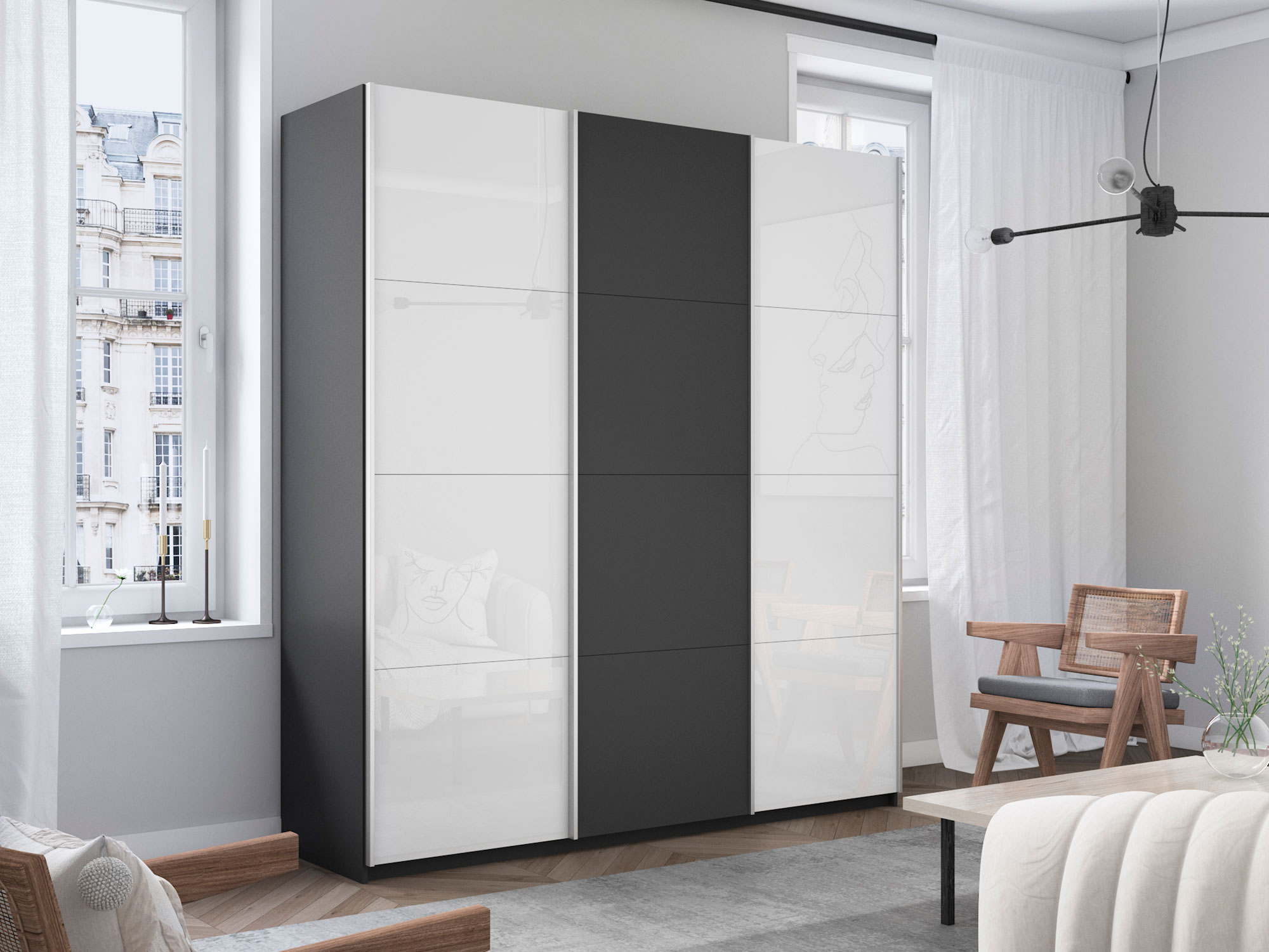 - Шкаф-купе Прайм Широкий 3-х дверный два белых стекла/ДСП Серый Диамант