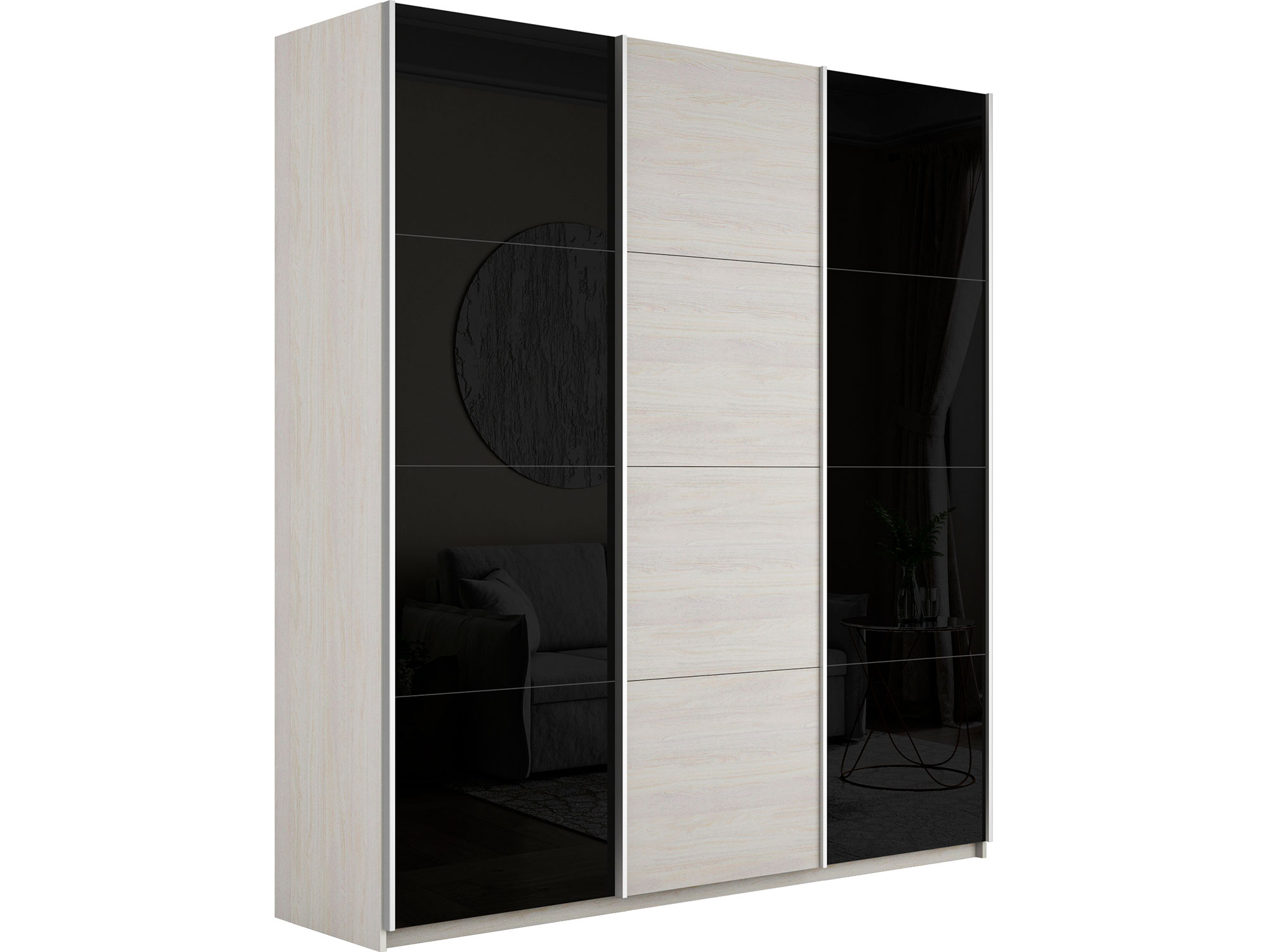 Шкаф-купе Прайм Широкий 3-х дверный два черных стекла/ДСП Ясень Анкор Светлый