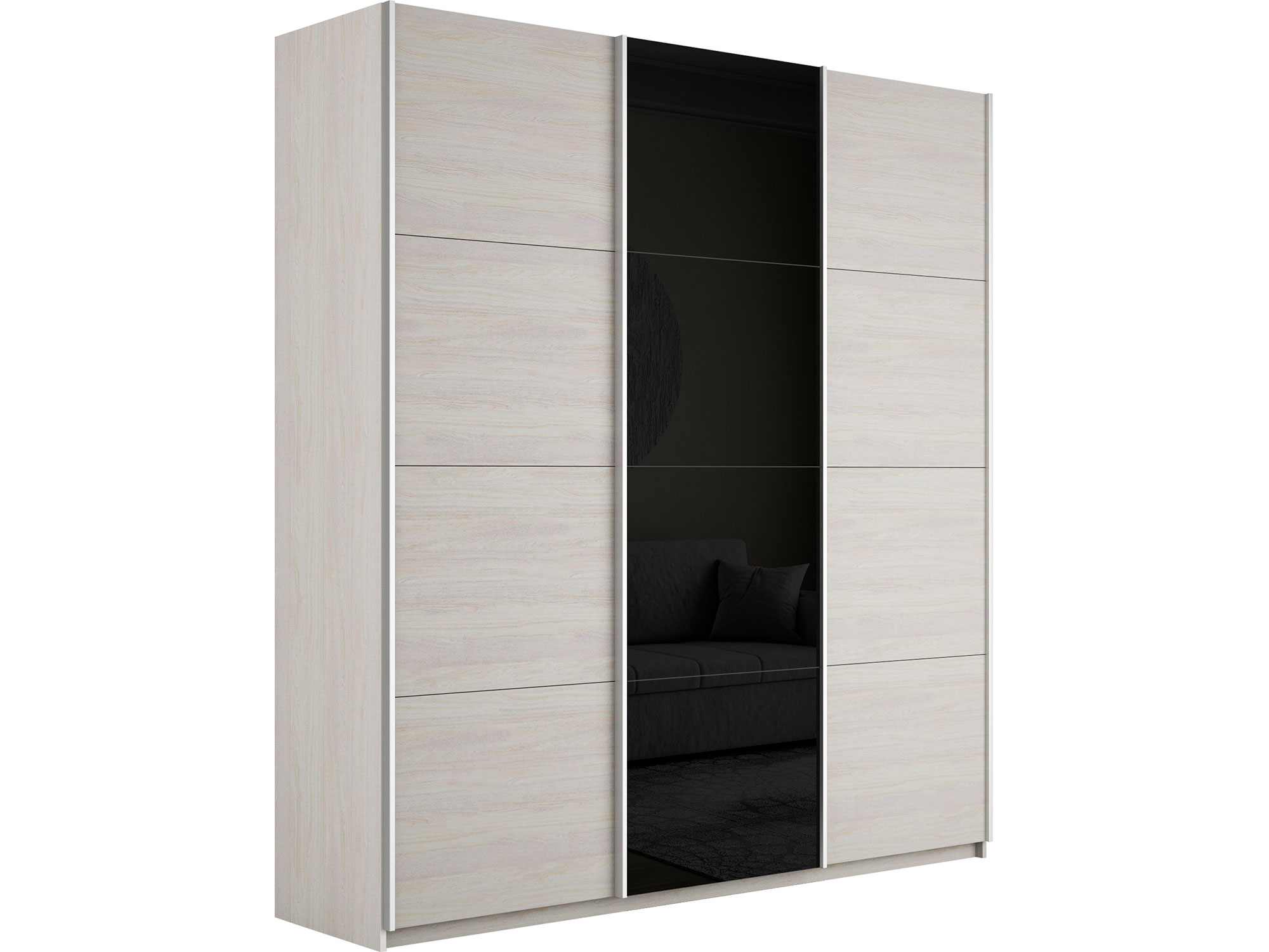 - Шкаф-купе Прайм Широкий 3-х дверный два ДСП/Стекло Черное Ясень Анкор Светлый