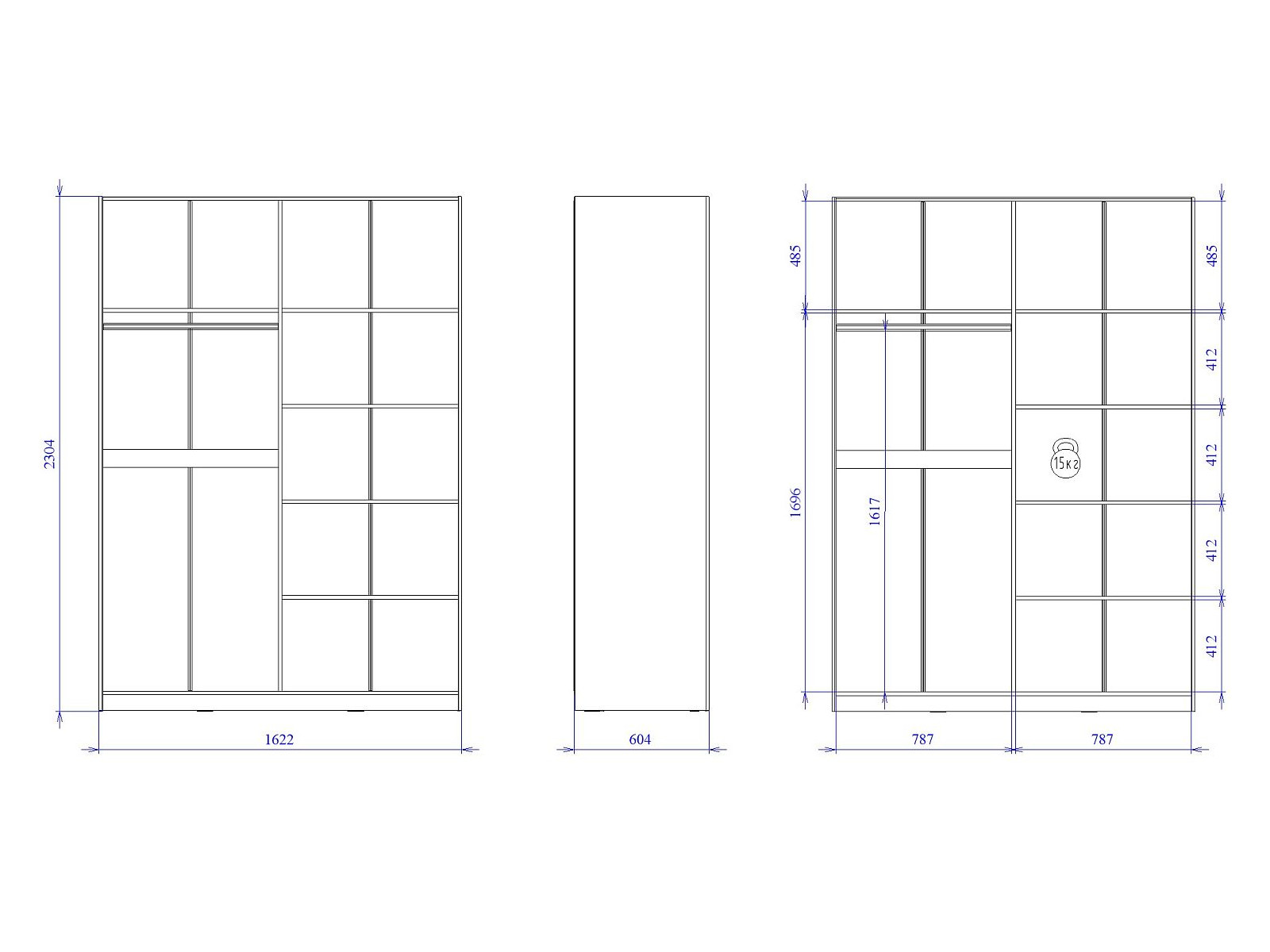 Макс.нагрузка на полку (кг): 15