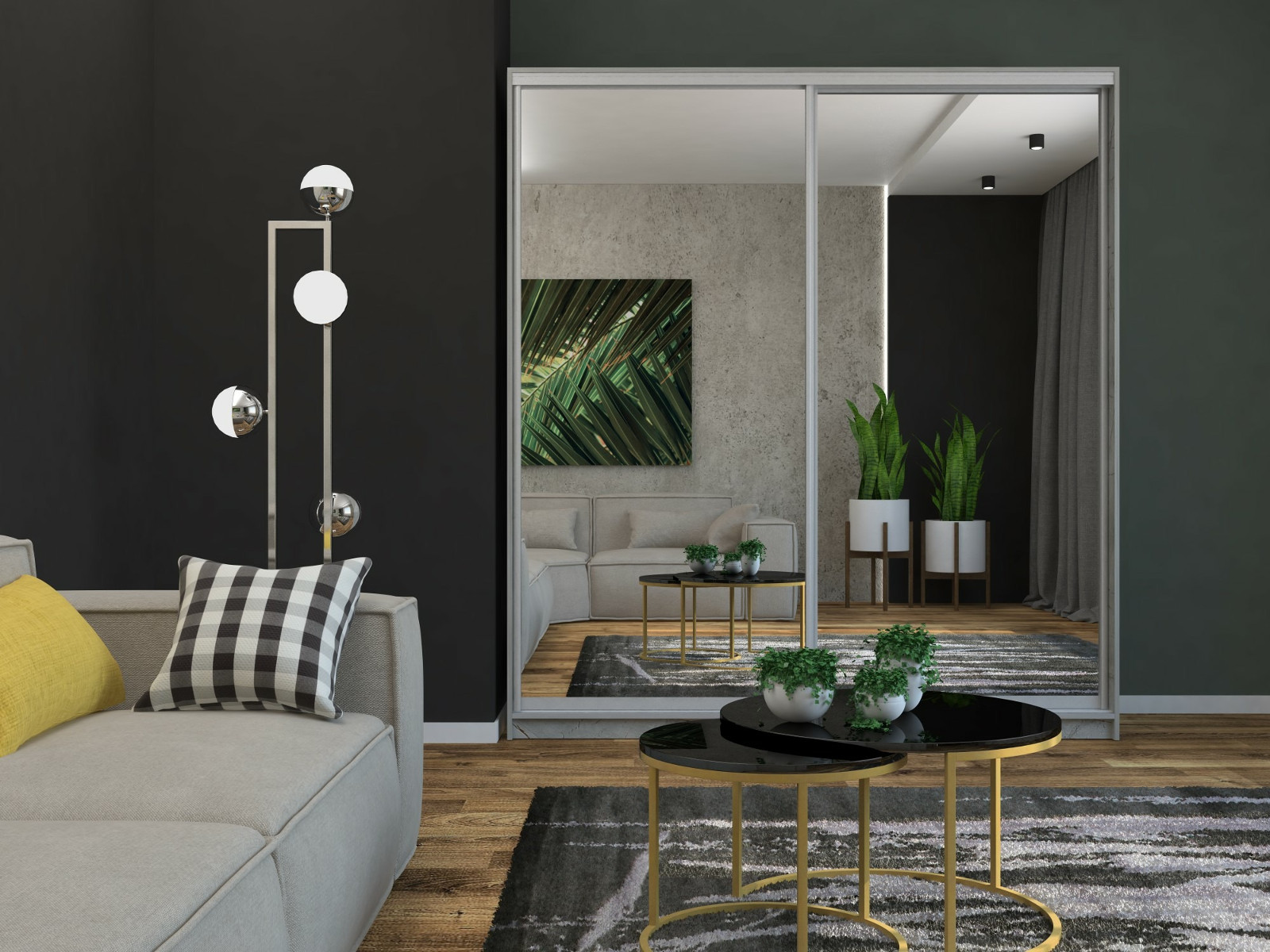 - Шкаф-купе Юлия 2000 зеркало/зеркало серый