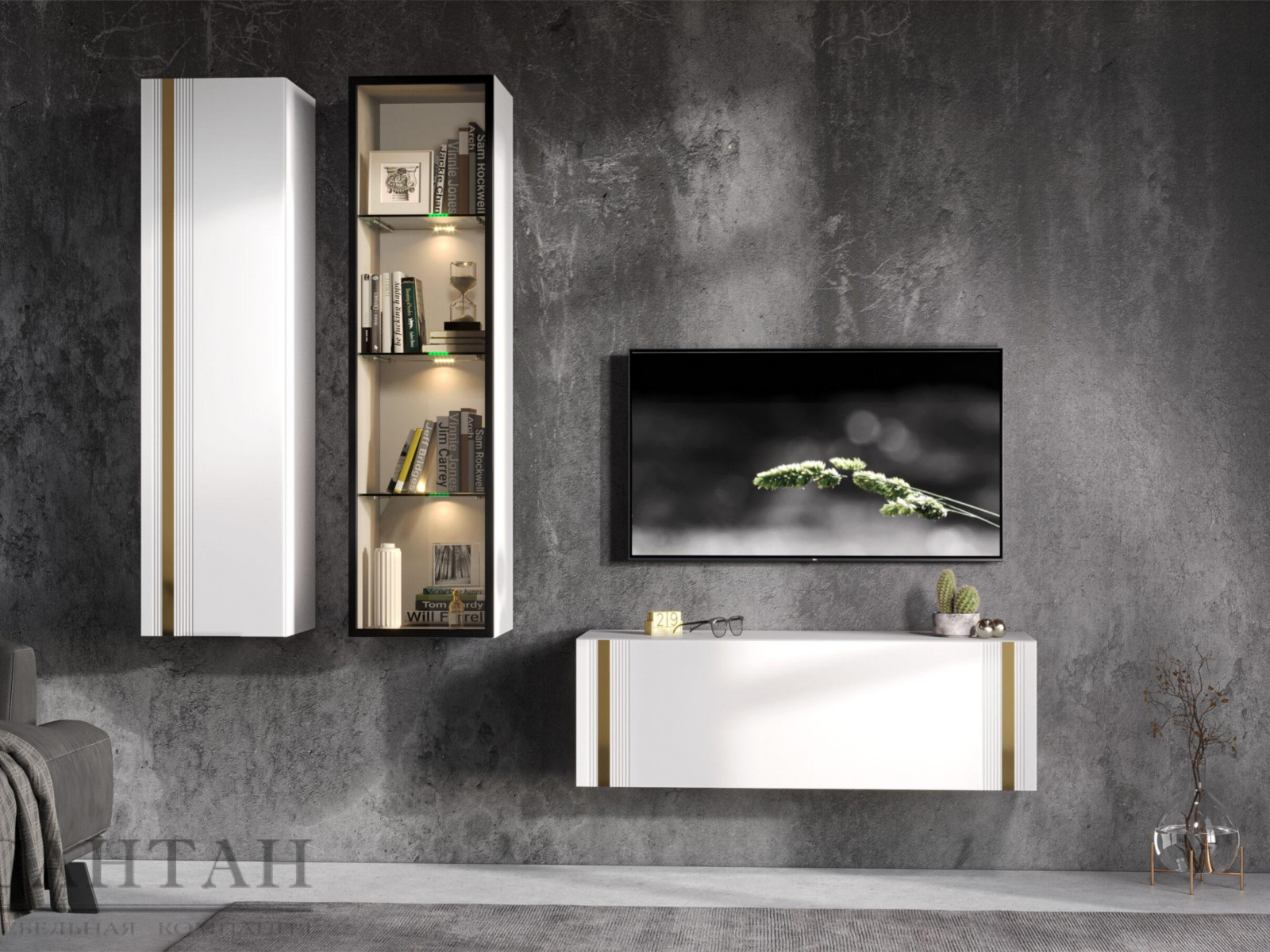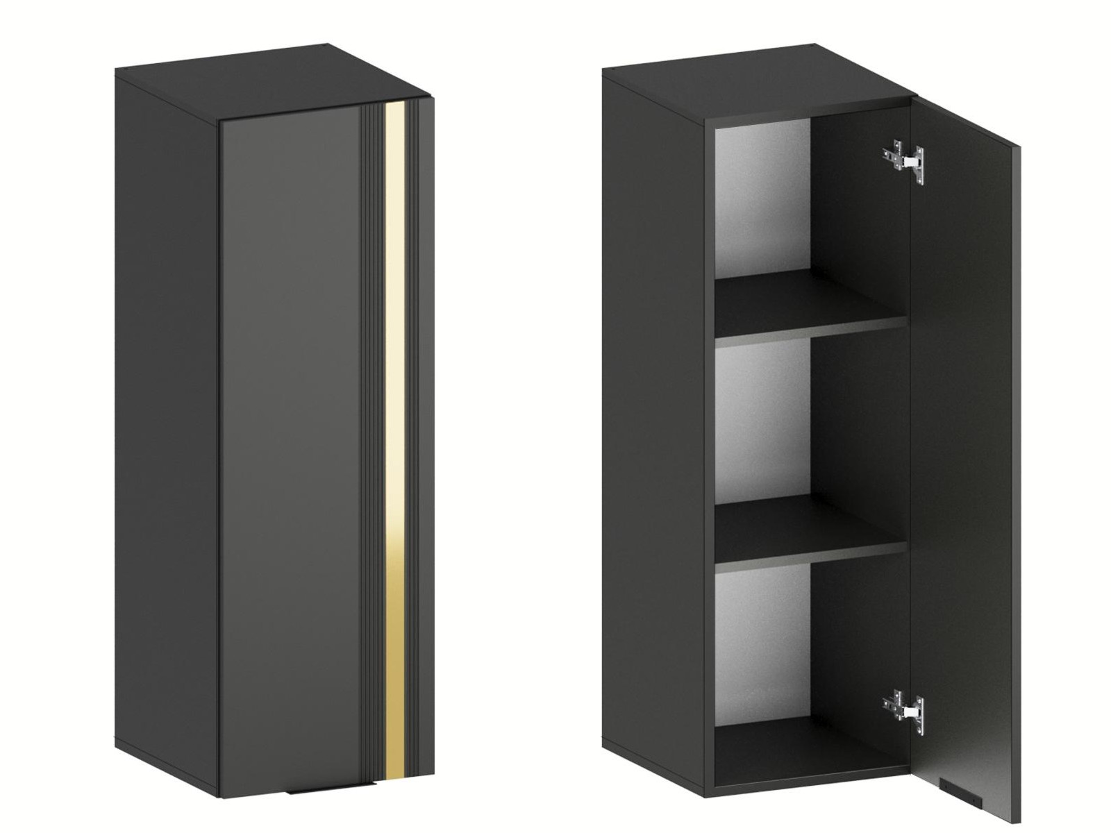 - Фасады из МДФ с оригинальной фрезеровкой покрыты суперматовой пленкой с эффектом Soft Touch в цветах Графит и Milk.